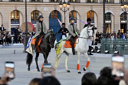 Vogue World: Paris - Show PARIS, FRANCE - JUNE 23: Kendall Jenner and Gigi Hadid ride horses on the runway during Vogue World: Paris at Place Vendome on June 23, 2024 in Paris, France. (Photo by Kristy Sparow/Getty Images for Vogue) (Kristy Sparow/Getty Images for Vogue)