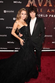 "Avatar: Fire And Ash" World Premiere HOLLYWOOD, CALIFORNIA - DECEMBER 01: (L-R) Miley Cyrus and Maxx Morando attend the world premiere of 20th Century Studios "Avatar: Fire and Ash" at The Dolby Theatre in Hollywood, California on December 01, 2025. (Photo by Jesse Grant/Getty Images for 20th Century Studios) (Jesse Grant/Getty Images for 20th Century St)