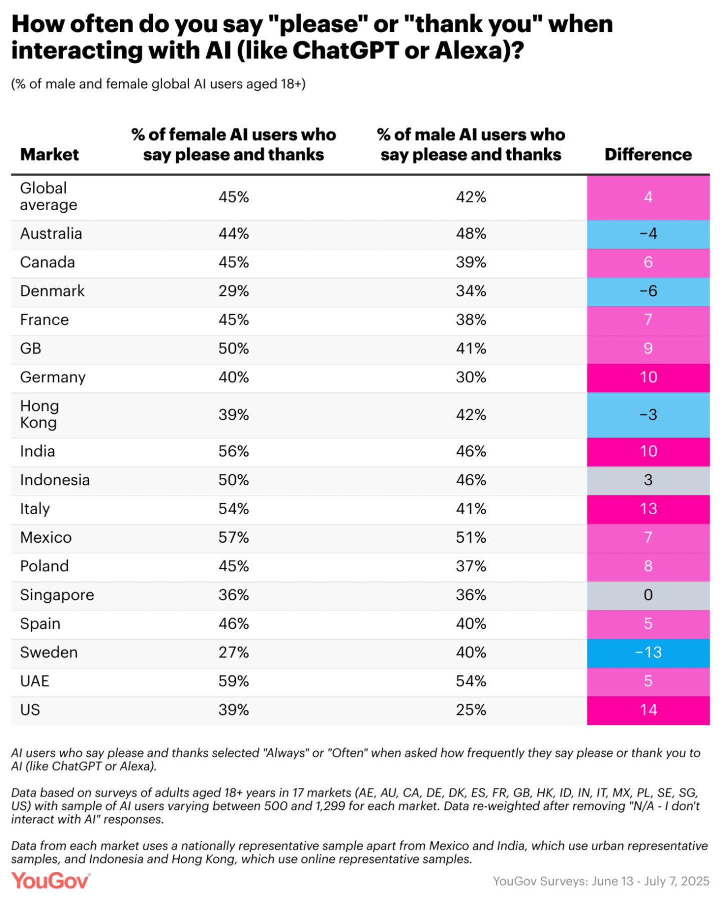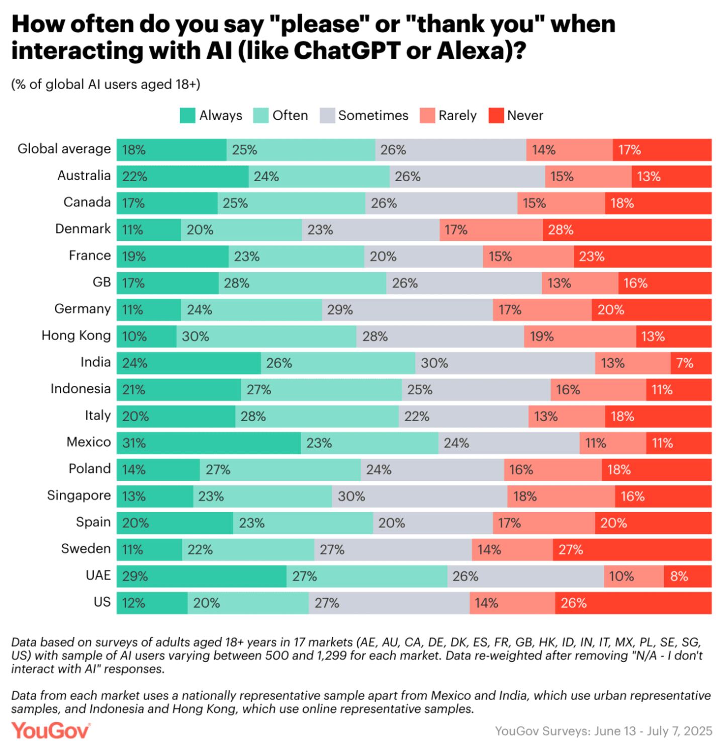 ​​The global survey, conducted from June 13 to July 7, 2025, surveyed more than 12,000 AI users across 17 countries, offering cross-cultural insights into the etiquette of human-AI interactions.