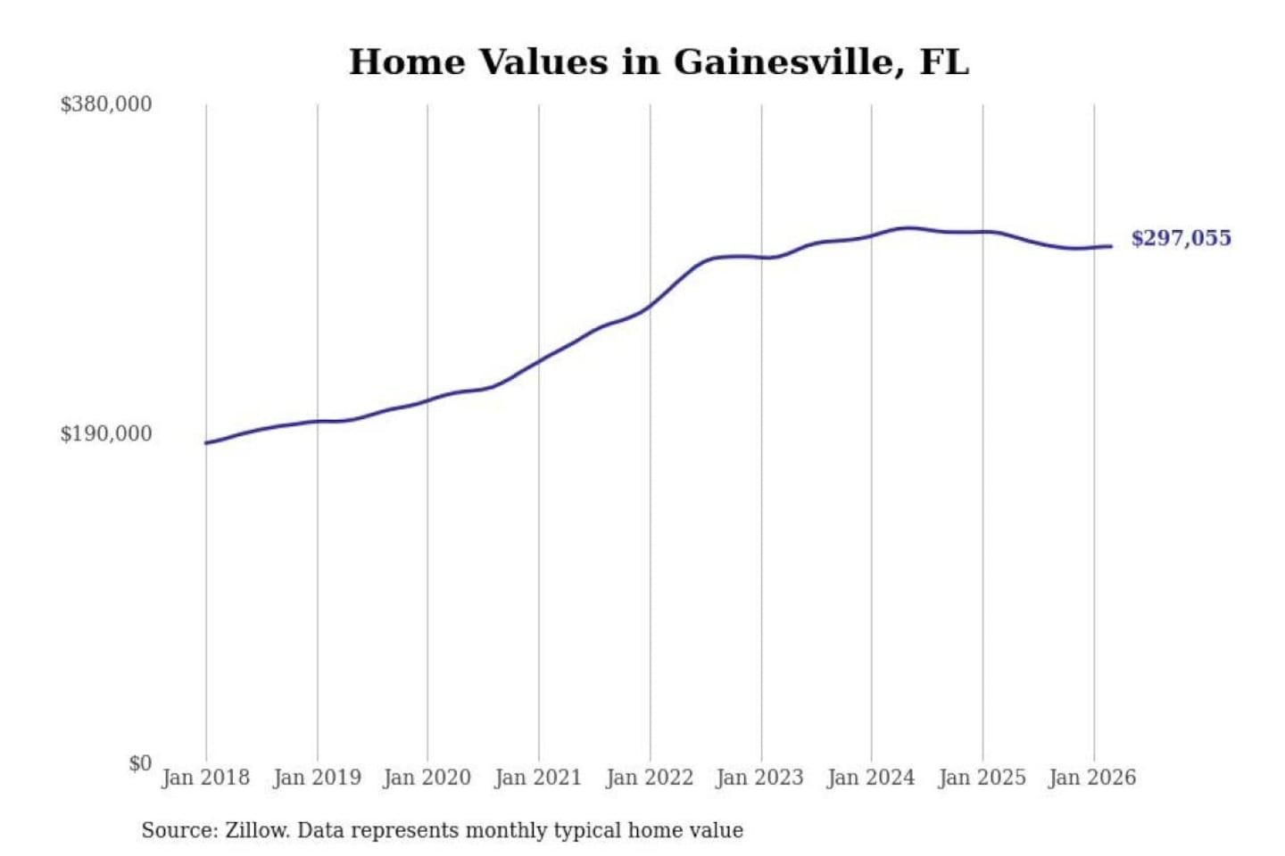 Stacker compiled a list of cities with the most expensive homes in the Gainesville, FL metro area using data from Zillow. Charts show the monthly typical home value since January 2018.