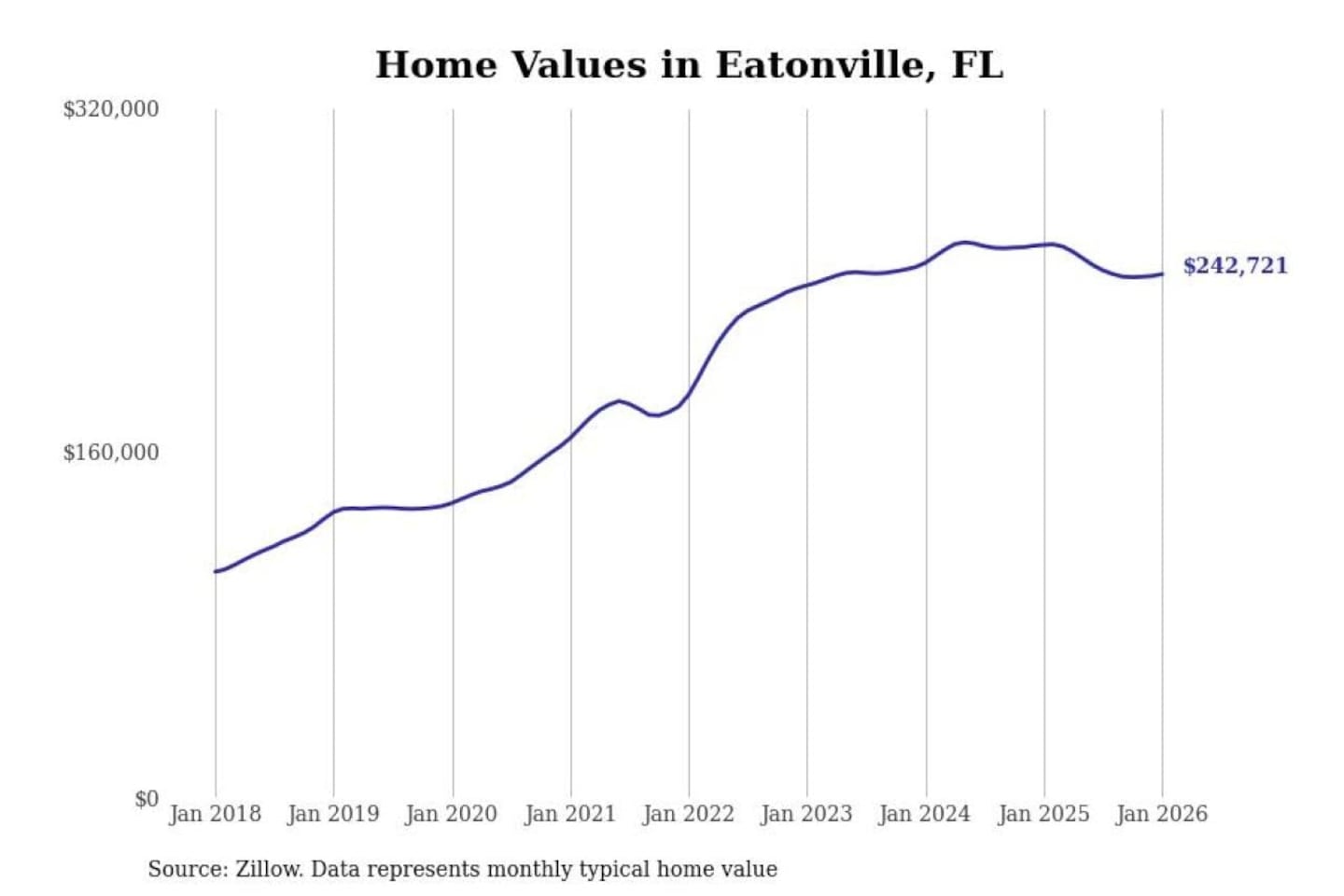 Stacker compiled a list of cities with the most expensive homes in the Orlando-Kissimmee-Sanford, FL metro area using data from Zillow. Charts show the monthly typical home value since January 2018.
