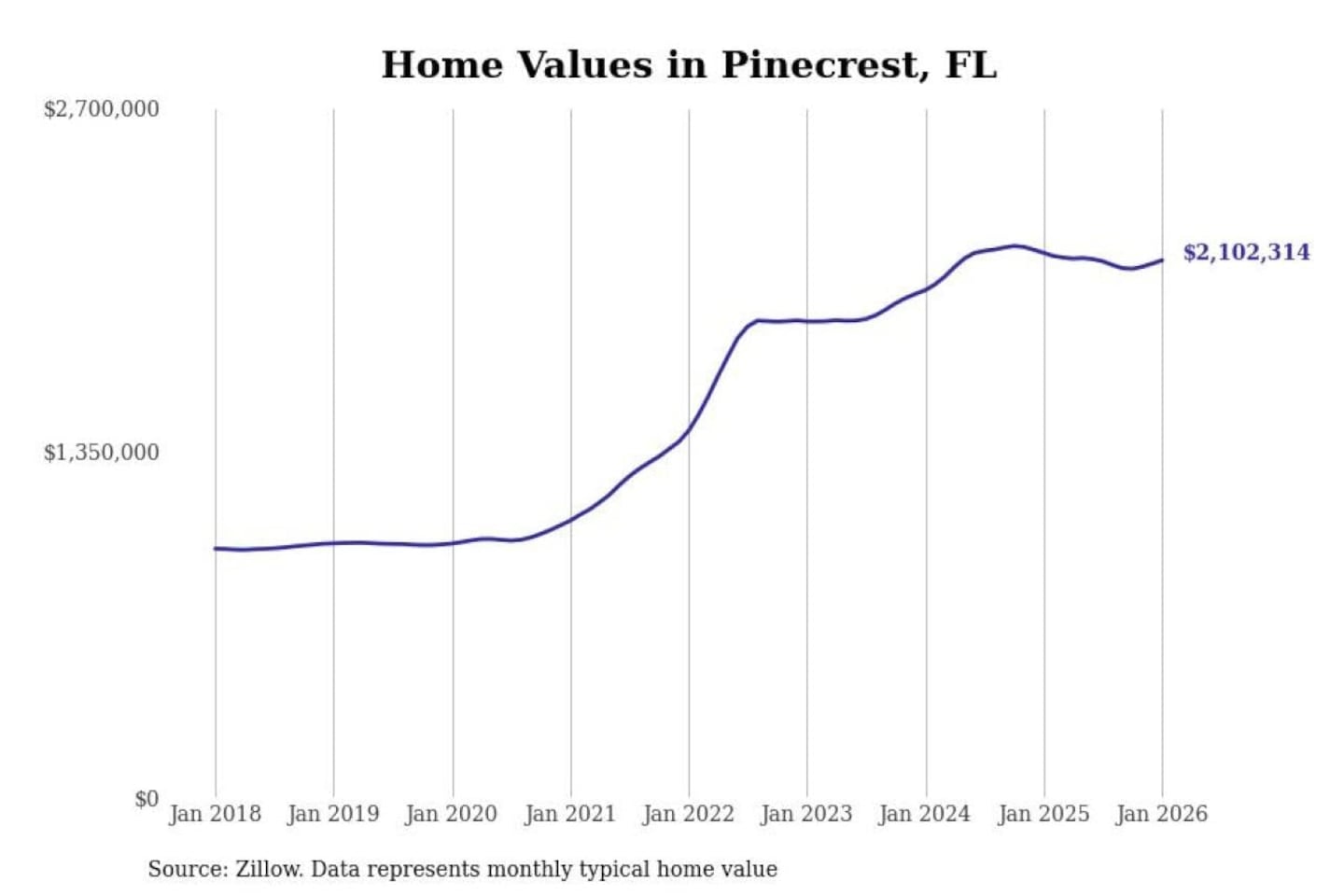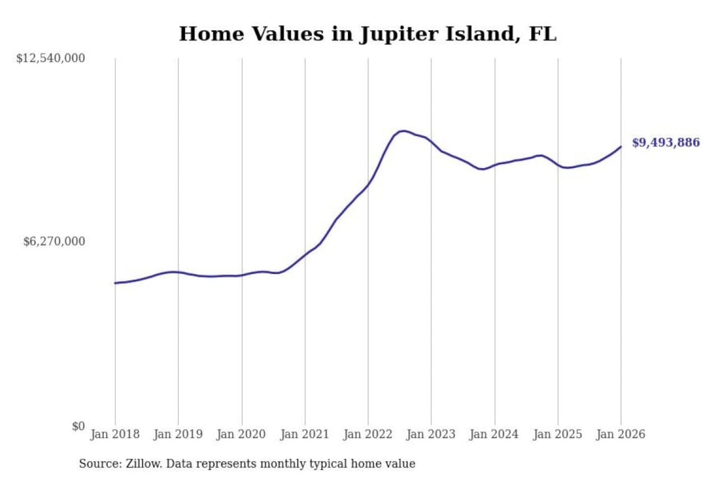 Stacker compiled a list of cities with the most expensive homes in Florida using data from Zillow. Cities are ranked by the Zillow Home Values Index for all homes as of January 2026. The charts in this story were created automatically using Matplotlib.