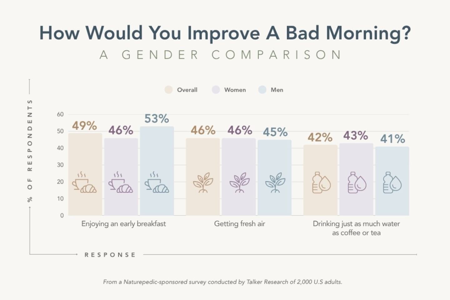 How much does your morning routine impact the rest of your day? Naturepedic teamed up with leading consumer insights and data firm Talker Research to find out — and the results might make you rethink hitting snooze. In fact, 37% of Americans say they can tell how their day will go within the first 10 minutes of waking up.
