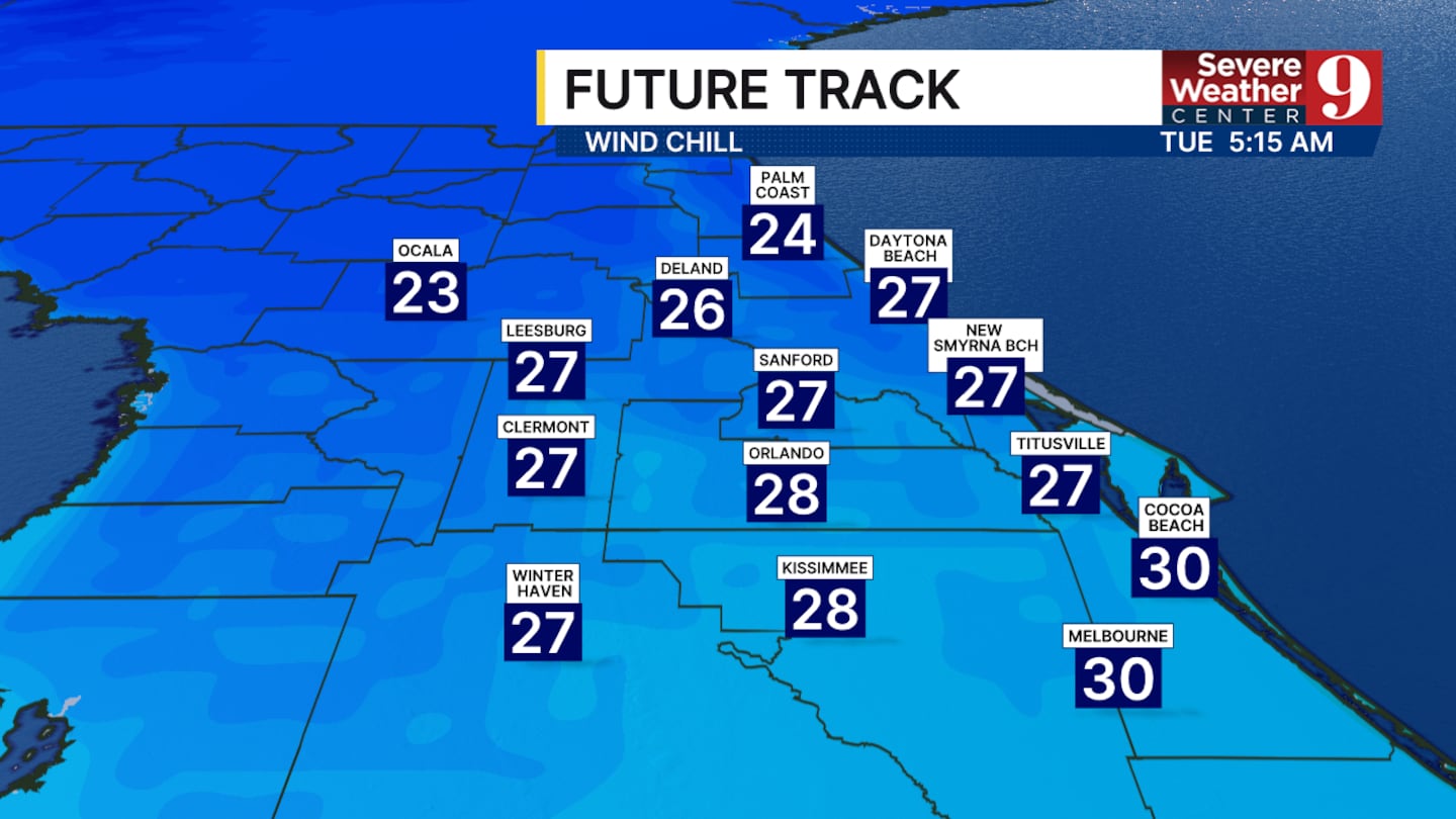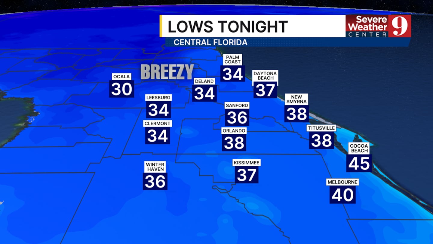That same north wind will also give us a bit of a wind chill for the morning hours. The “feels like” temperature could fall into the low 30s for Orlando.