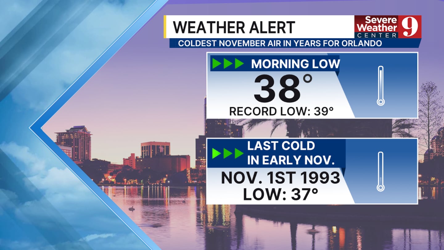 ORLANDO, Fla. — A Weather Alert Day has been issued ahead of coldest early November morning in more than three decades.