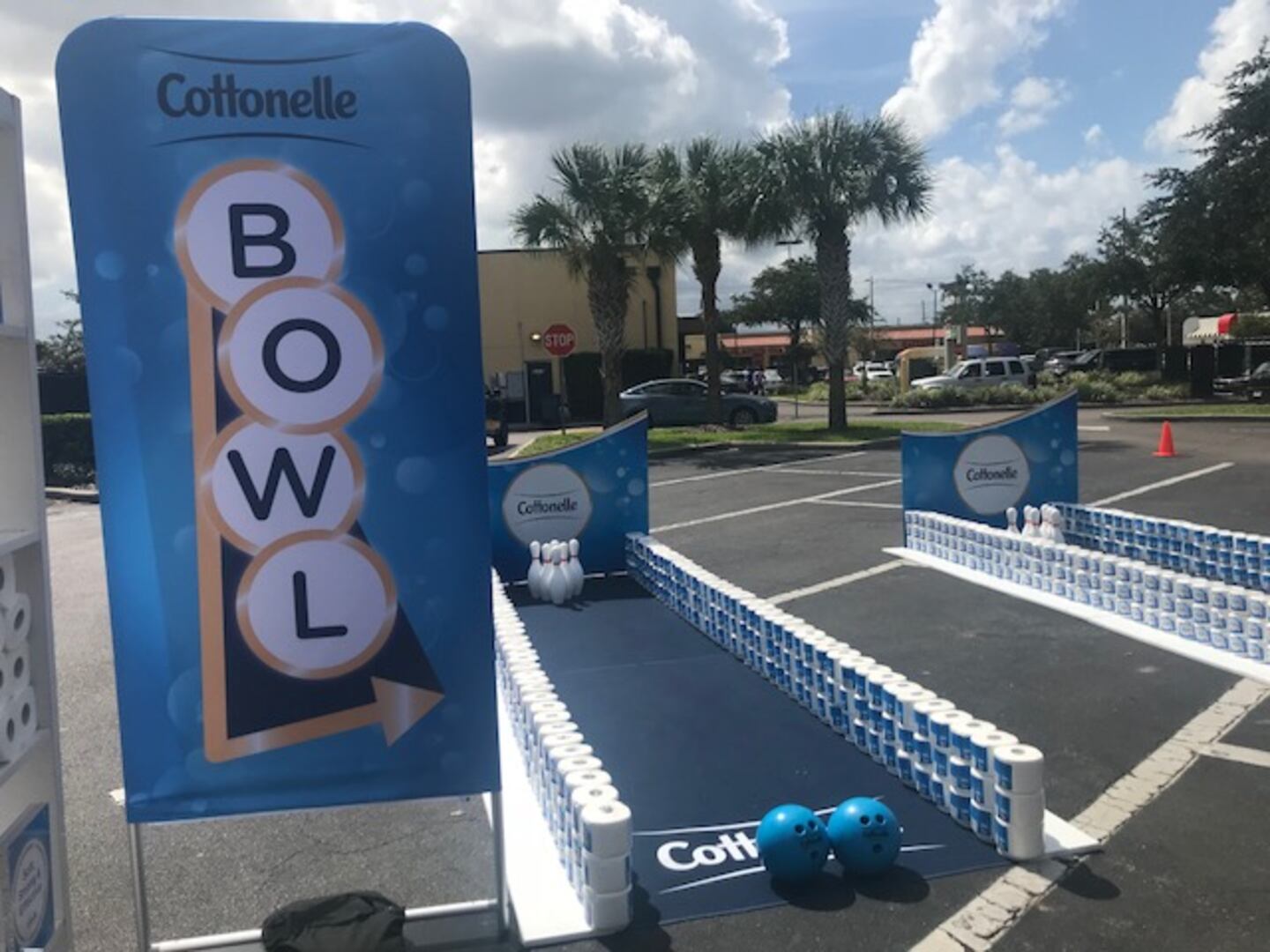 Customers were not only treated to free tushy wipe: the Amazon crew also set up a mini bowling alley (made from rolls of toilet paper of course) and a free candy bar.