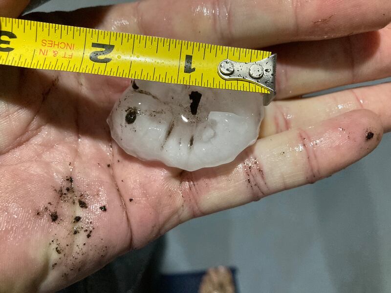 Hailstorm not fun! Almost two inches in diameter pic.twitter.com/sk2EaQDM60