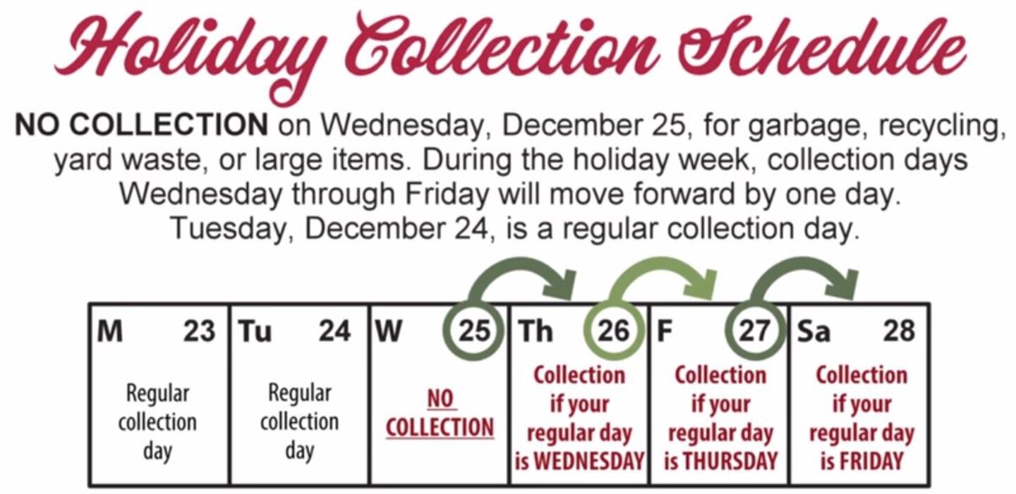 For Seminole County, your collection will not be taken on Christmas Day. It will be on the next scheduled collection day. Real Christmas trees will be collected every Wednesday after the holiday through the end of January. However, trees that are taller than 8 feet must be cut in half.