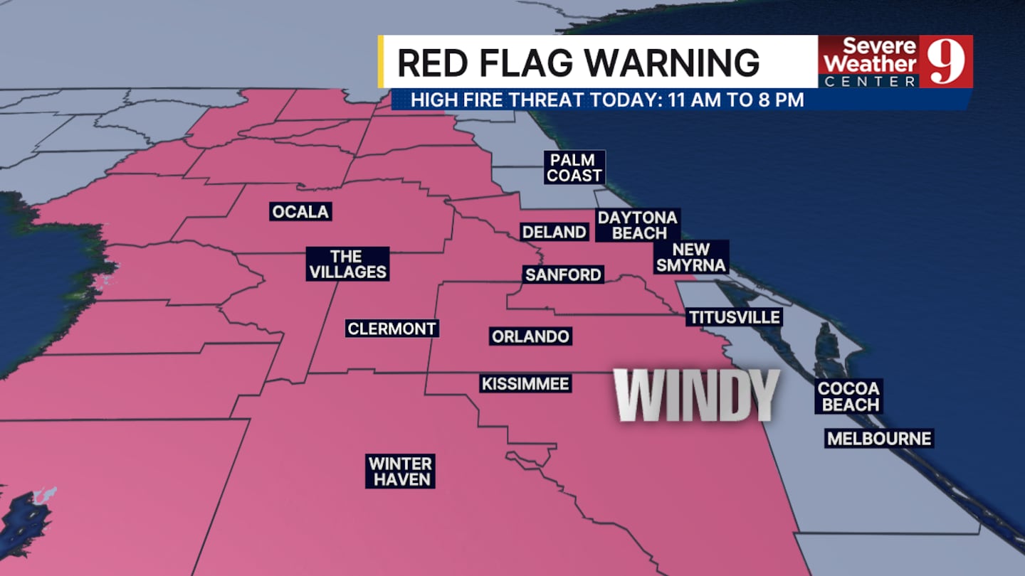 ORLANDO, Fla. — A “Red Flag Warning” will be in place on Tuesday for most of Central Florida due to a high fire threat.