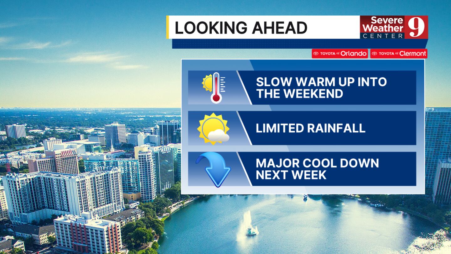 ORLANDO, Fla. — Wednesday will bring a milder start the day, with morning temps in the upper 50s and 60s in Central Florida.