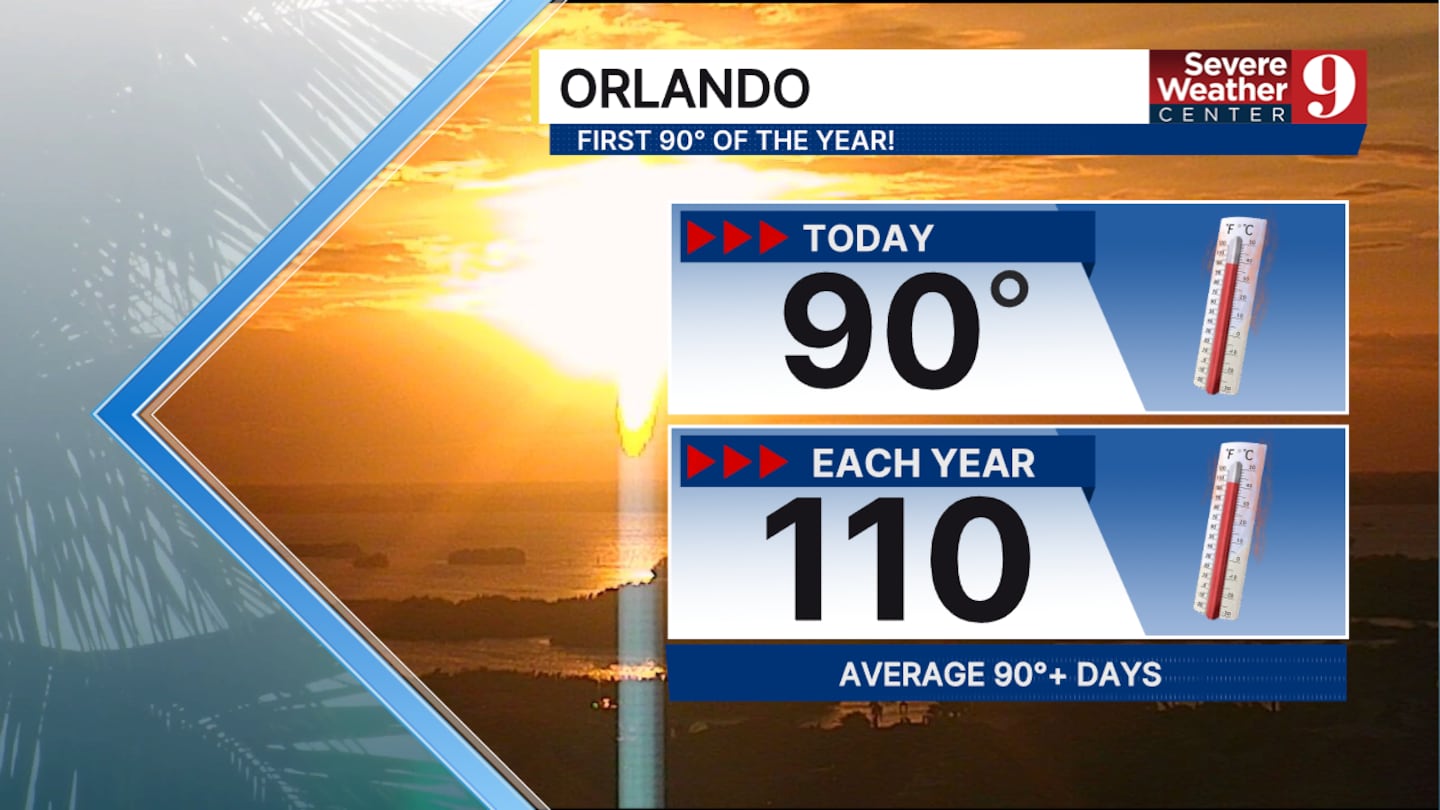 ORLANDO, Fla. — Orlando had its first of many 90°F days with a record-tying afternoon - the old record was 90 back in 1918!