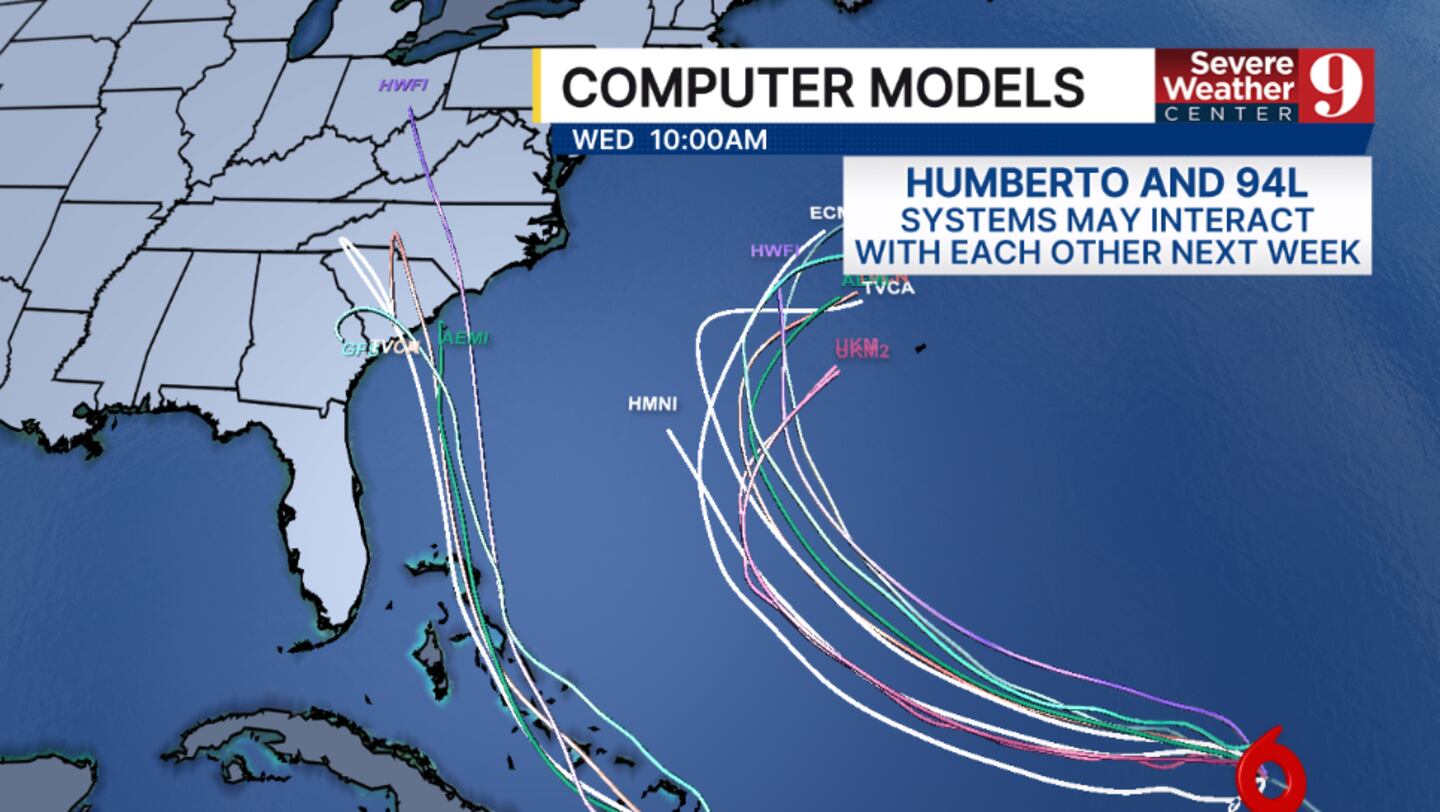 Computer models are indicating Humberto and 94L could interact with each other, but both may stay separate systems.