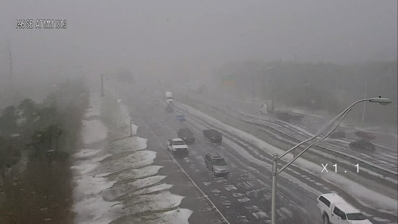 Hail on I-95 Hail is falling on I-95 in Brevard County. (FDOT)