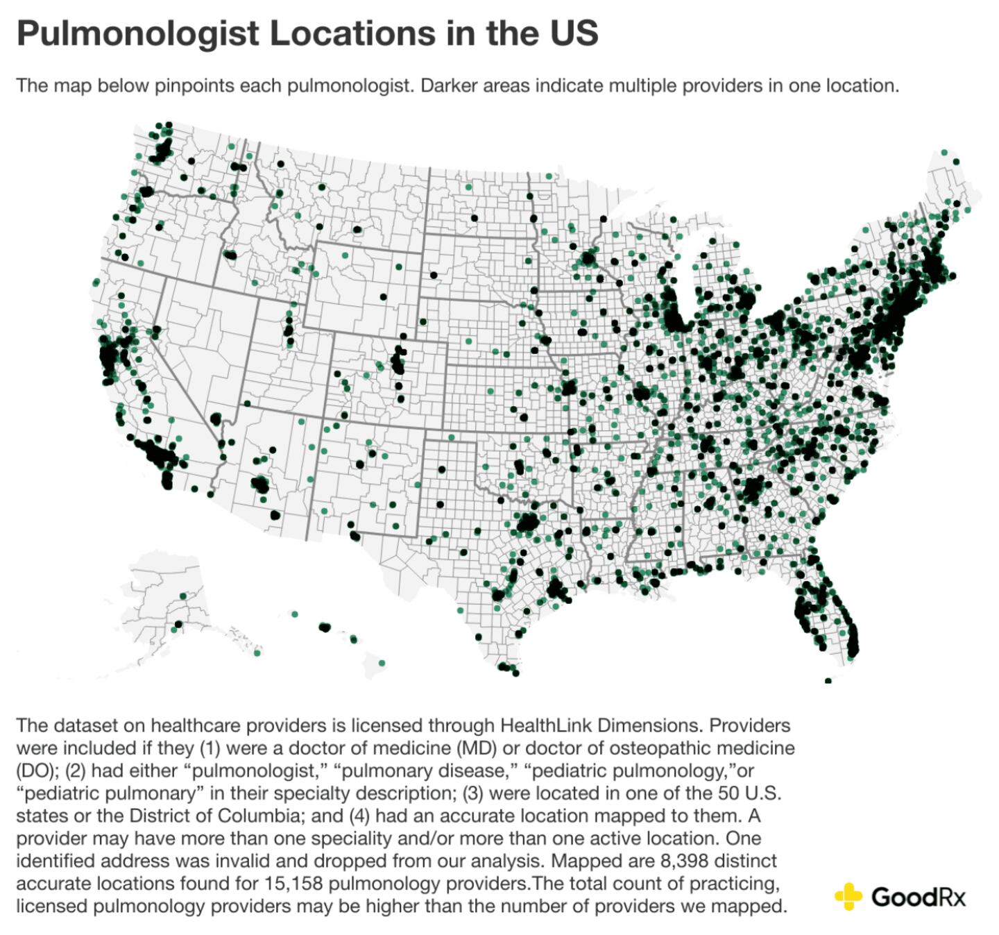 GoodRx then identified counties where a majority of the population lived at least an hour from the closest pulmonologist.