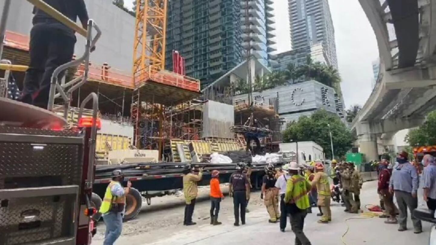 “Something malfunctioned and it came loose,” Miami Fire Rescue Lt. Pete Sanchez told the Miami Herald. “The two trapped under the rubble were impaled by rebar in their upper body. We cut them out.”