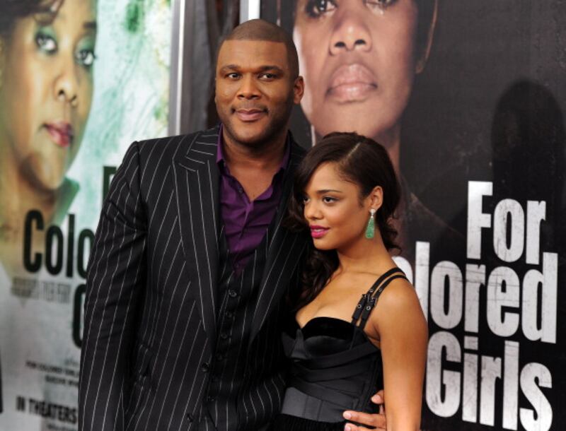 Through the years Director Tyler Perry (L) and Tessa Thompson attend the premiere of "For Colored Girls" at Ziegfeld Theatre on October 25, 2010 in New York City. (Photo by Stephen Lovekin/Getty Images) (Stephen Lovekin/Getty Images)