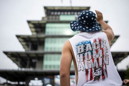 2023 Indy 500: A fan looks on before Sunday's Indianapolis 500 at the Indianapolis Motor Speedway. (James Gilbert/Getty Images)