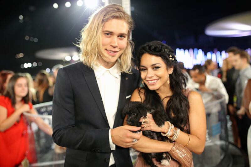 Photos: Vanessa Hudgens through the years 2015: Actors Austin Butler (left) and Vanessa Hudgens pose with adoptable puppies from the Shelter Pet Project during the 2015 MTV Video Music Awards at Microsoft Theater on August 30, 2015, in Los Angeles. (Mike Windle/Getty Images)