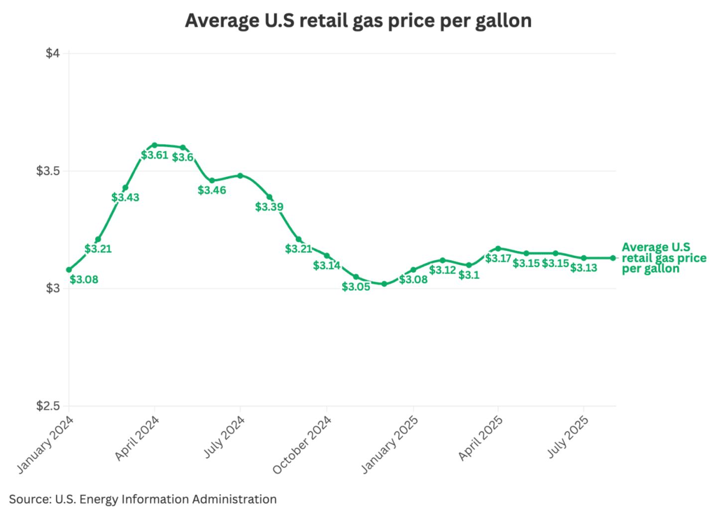 While average national gas costs are lower than the all-time high of $5.03 in June 2022, they are still higher than historical averages. Just five years ago, the price per gallon was $1.93. Today it is around $3.13. This is directly felt by consumers every time they get in their vehicle and drive somewhere.