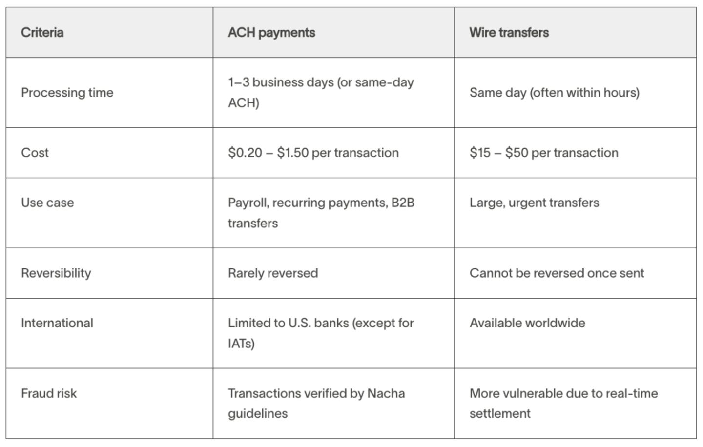 ACH vs. wire transfers