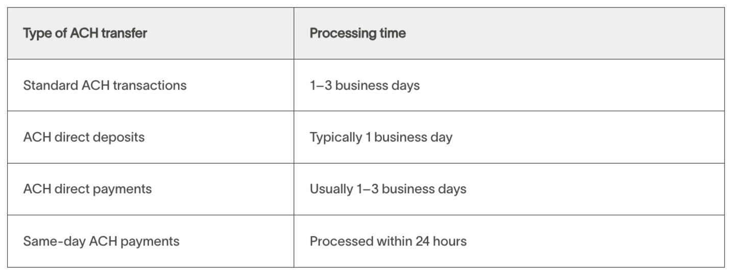 ACH processing timelines
