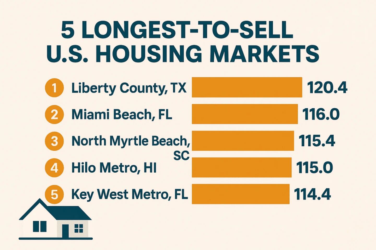 In short, none are that far behind Liberty County when it comes to how quickly houses sell — or rather, don’t sell. Yet on paper, they are worlds apart in every other respect.
