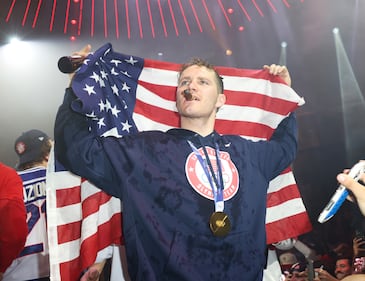 PHOTOS: USA Men's Hockey Team Celebrate Their Olympic Gold in Miami