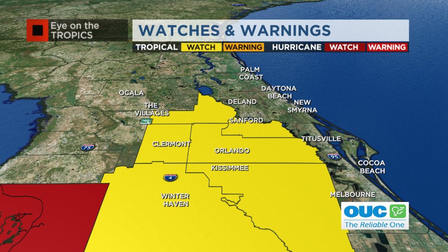Tropical storm watches have been issued for Lake, Orange, Osceola, Polk and Seminole counties.